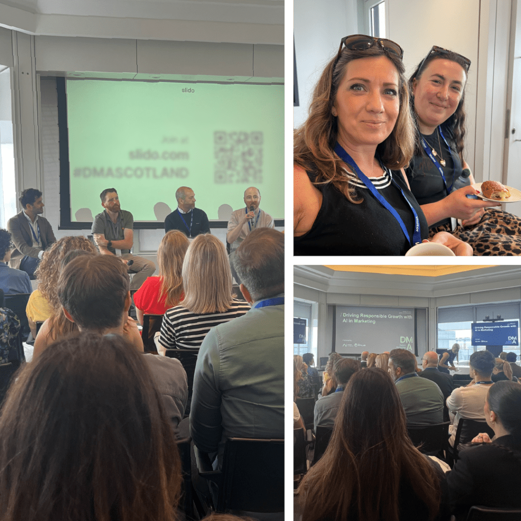 Last month, members of our Studio Team attended a seminar hosted by the Data & Marketing Association on ‘Driving Responsible Growth with AI in Marketing’ which featured our own Graeme Clark, (Head of Art) as part of the panel which discussed real-world applications of AI in Scottish Businesses. The seminar covered a broad spectrum of topics in AI, such as; how AI is currently being applied in Marketing, the ethical implications of AI, the importance of harnessing AI responsibility, and how AI is driving growth in companies.
